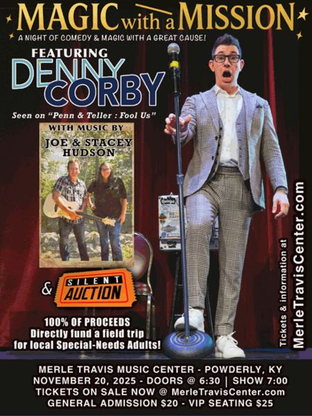 Come out and enjoy an evening of magic & comedy with Denny Corby. 100% of the proceeds will fund a field trip for Local Special Needs Adults. Special musical guests Joe & Stacey will open up the evening with a variety of acoustic music